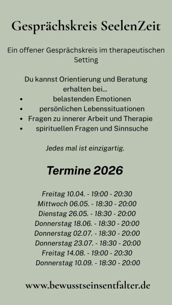 Gesprächskreis SeelenZeit mit Johannes Falter am 02.07.2026 von 18:30 Uhr bis 20:00 Uhr im Raum der Stille