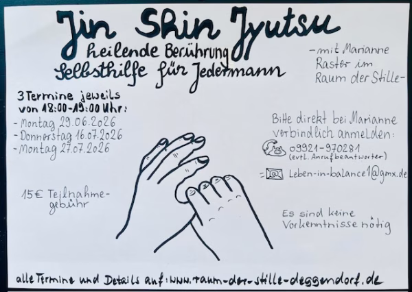 Jin Shin Jyutsu – Notfallapotheke für den Sommer und Urlaub mit Marianne Raster am Montag, den 29.06.2026 von 18:00 Uhr bis 19:00 Uhr im Raum der Stille
