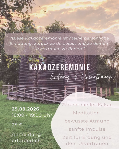In einem achtsamen Raum darfst du dich selber wieder spüren, dich erden und so sein wie du bist. Der zeremonielle Kakao begleitet dich dabei, dein Wurzelchakra zu stärken und innerlich zur Ruhe zu kommen. Durch Meditation, bewusste Atmung und sanfte Impulse stärken wir in der Gemeinschaft das Gefühl von Getragen sein, Erdung und Vertrauen ins Leben.