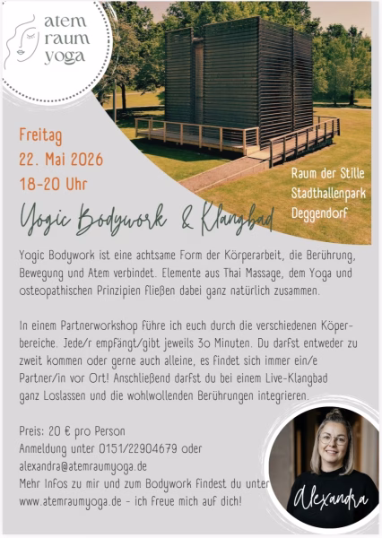 Bitte direkt bei Alex anmelden: alxandra@atemraumyoga.de, oder 0151-22904679